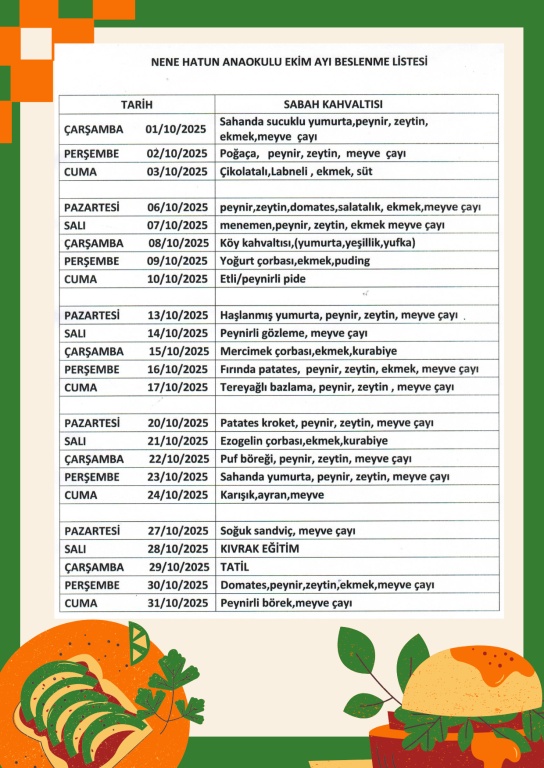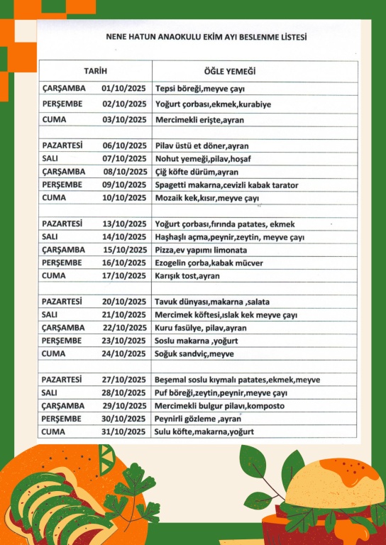 EKİM AYI BESLENME LİSTESİ